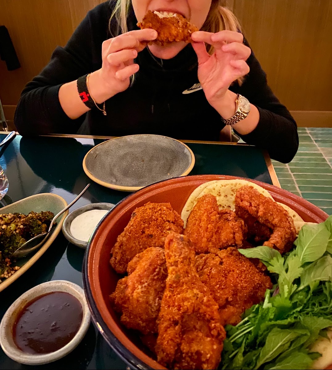 Oh this place wa incredible!!! Came here for my birthday and they even gave me a little happy birthday card. Josh was such an amazing server. Constantly checking in to make sure we were okay and if we needed anything. The food was incredible. We got the dip platter . The cheese with the focaccia, the latkes, and the chicken for 2, though I feel like its chicken for like 3 or 4 people. We also had all that stuff before, so who knows if it really is for 2 people. Haha. The atmosphere is very warm. 10 out of 10.